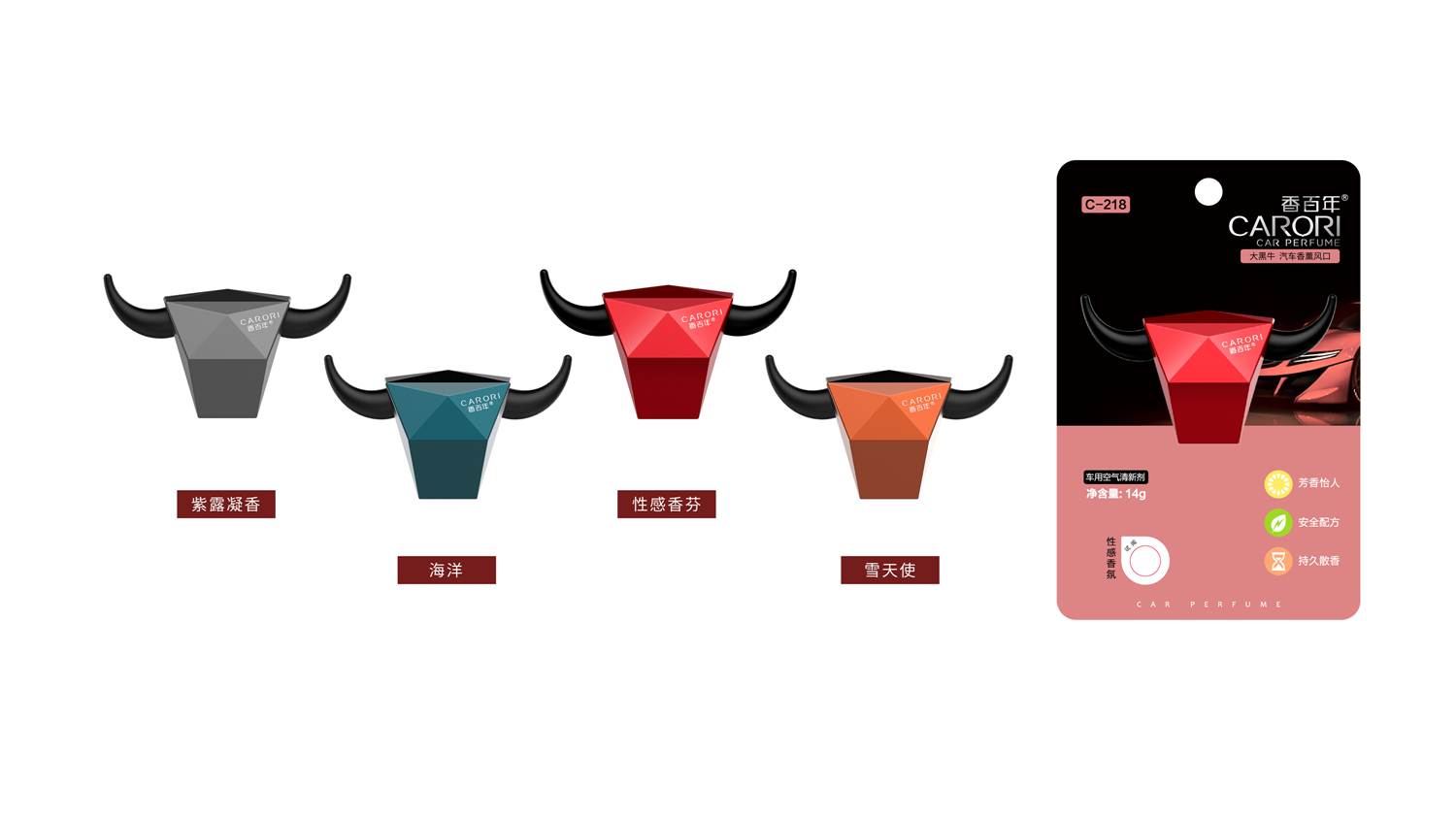 設計靈感來自勇武的西班牙斗牛,形象詮釋了人生應永不言敗,奮發向上的美好品質!正面采用切面設計搭配金屬噴漆與UV的獨特工藝,棱角分明、剛毅并重。其次面與面之間的轉折使光影變化更為豐富,放在車載風口,盡顯別樣的光影時尚美學!