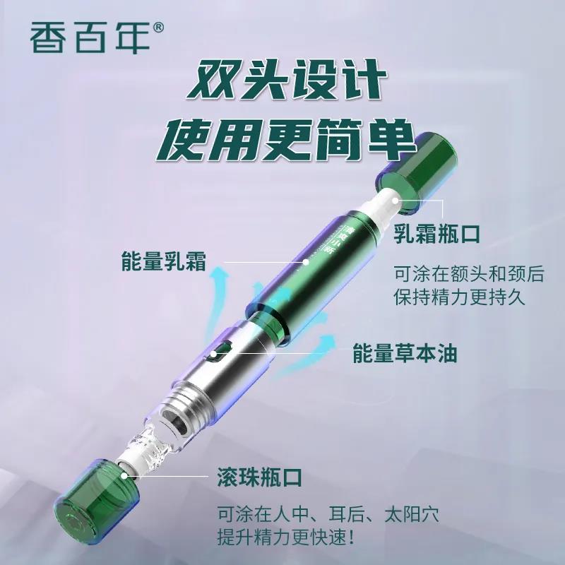 香百年清爽小新將能量本草油和能量乳霜合二為一,雙頭雙用,其兩端分別是乳霜和草本油。乳霜部分,取適量膏霜在掌心搓勻,涂抹于面部和頸部肌膚;草本油部分,則是取適量本品涂抹于頭部、肩頸肌膚按摩至吸收。同一個產品,兩端為兩種不一樣的用法,一抹一聞,伴隨著香百年的天然清香,皆可讓昏昏欲睡的車主快速清醒,遠離疲勞駕駛,清新爽膚、沁涼滋潤肌膚。