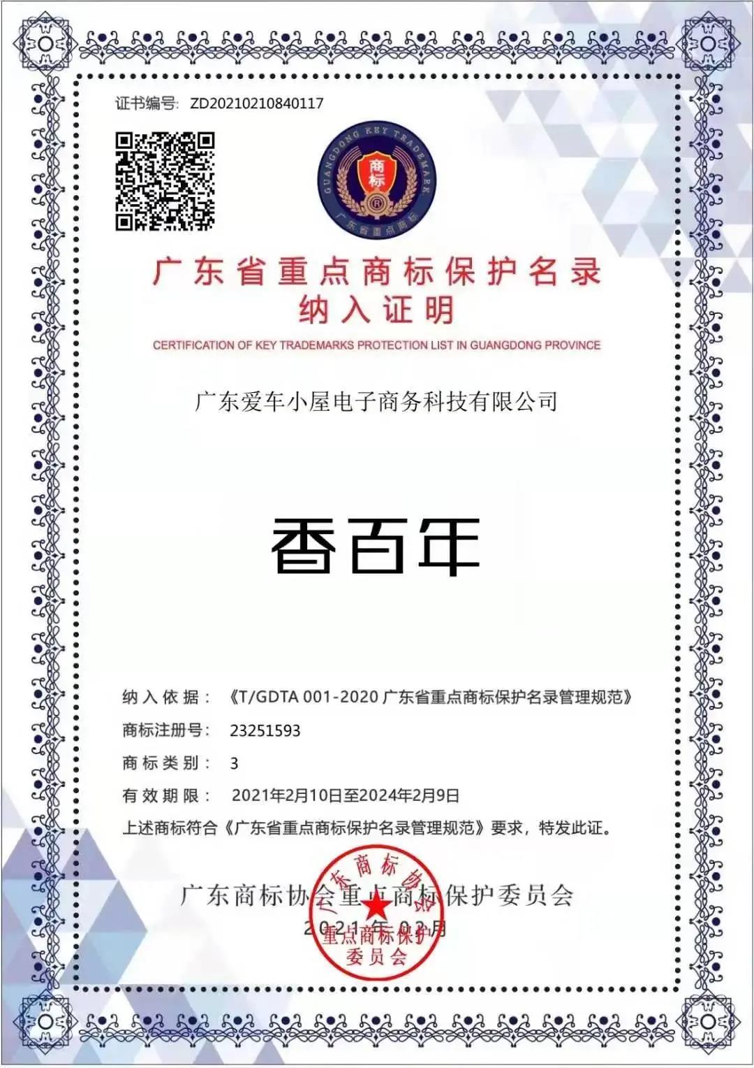喜訊!品牌獲權(quán)威認(rèn)證,香百年商標(biāo)納入《廣東省重點(diǎn)商標(biāo)保護(hù)名錄》